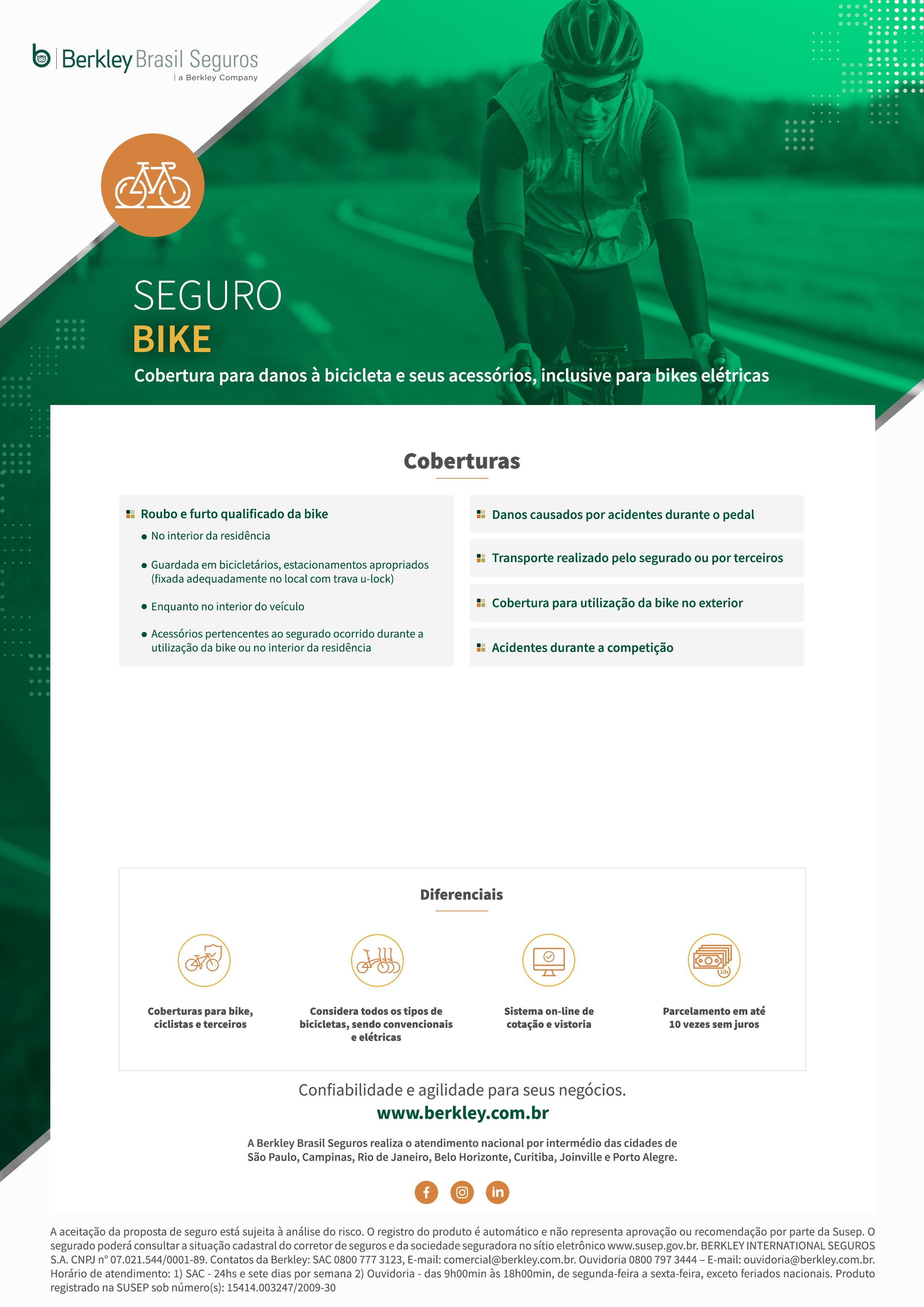 Cobertura para danos à bicicleta e seus acessórios, inclusive para bikes elétricas.